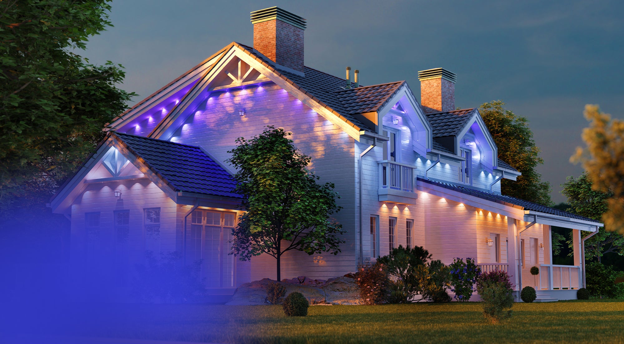 Create an unforgettable outdoor Christmas display. Decorate windows, roofs, bushes, and large trees with Twinkly smart lights, and group them to shine as one spectacular light show.