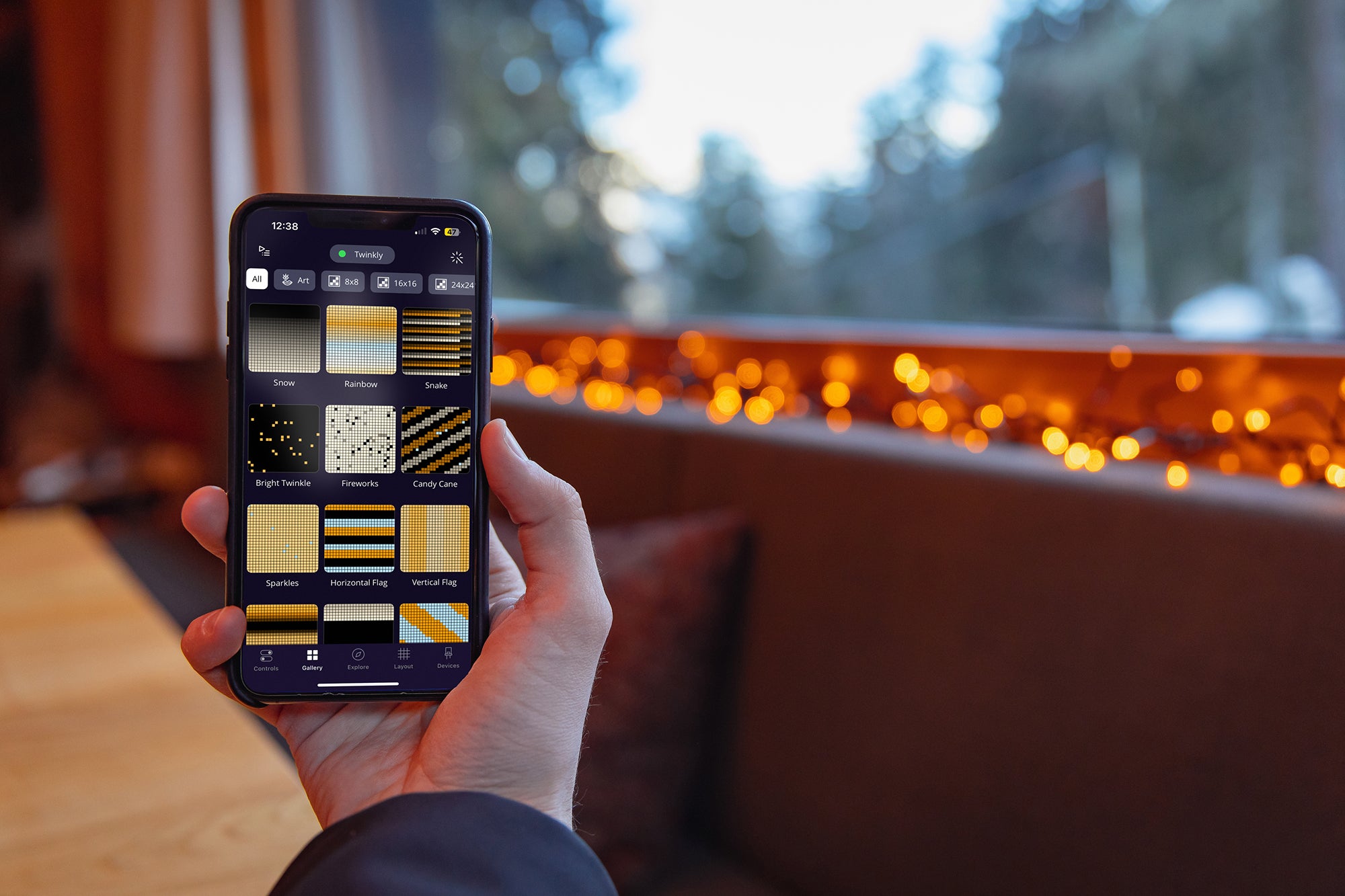 Verbinde virtuell mehrere Cluster und gruppiere sie mit anderen Twinkly-Lichtern, um als ein erweitertes Display zu fungieren oder synchronisierte Effekte für koordinierte Dekorbeleuchtung abzuspielen.
