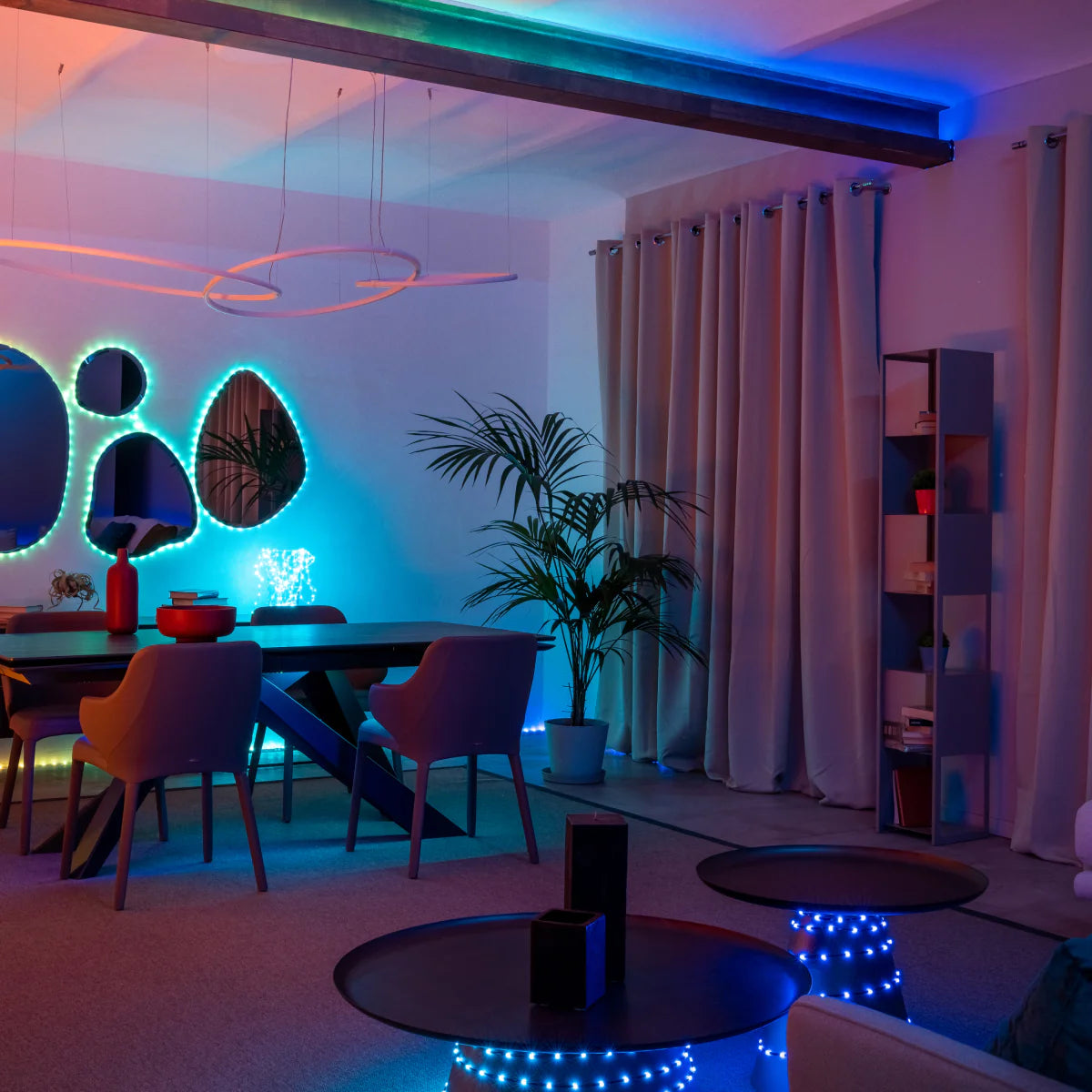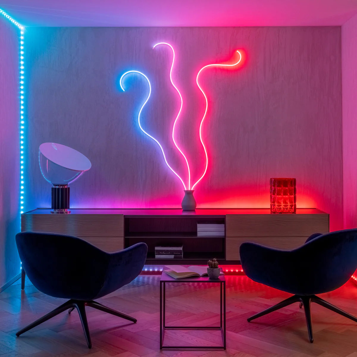 Transform your living space with harmonious accents and backlighting, ideal for relaxing and immersive entertainment.