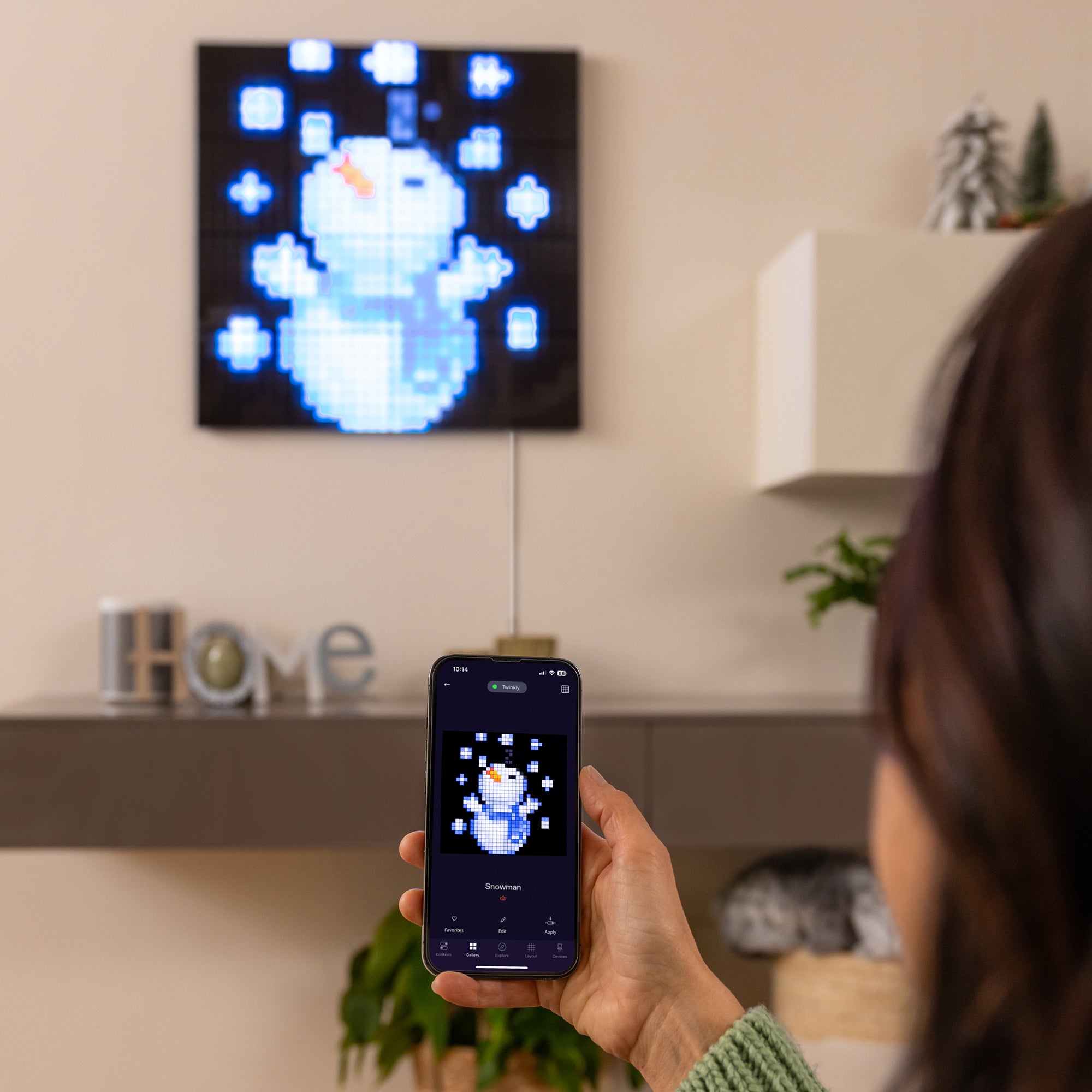 Upload GIFs from your phone or tablet to the Twinkly app to play stylized pixel versions on your smart LED lights. Or choose from a universe of GIFs directly in the Twinkly app using the built-in GIPHY feature.