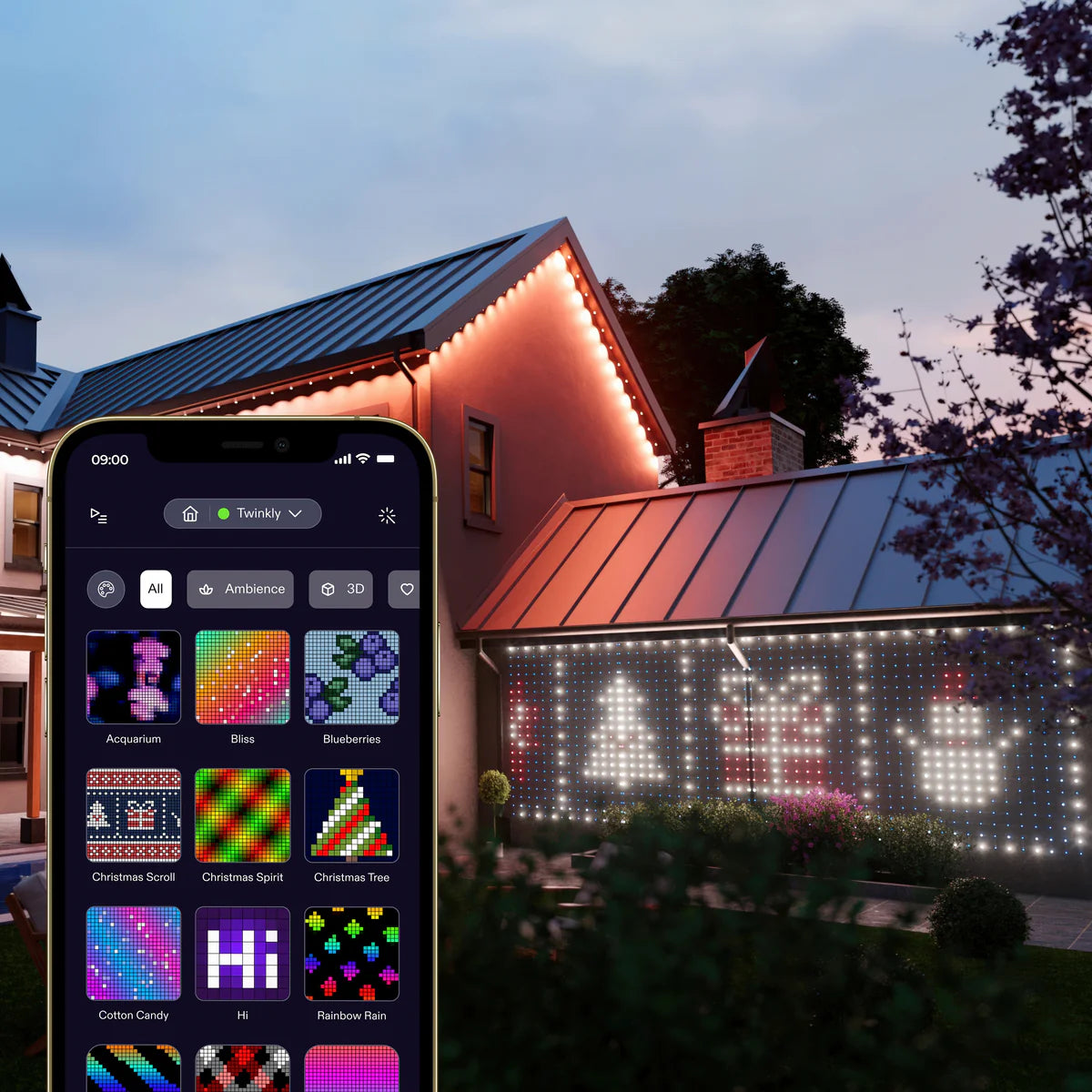 Transforma exteriores con Net Lights Twinkly. Esta malla LED flexible cubre setos y arbustos, adaptándose a su forma natural. Conecta virtualmente y sincroniza con otras luces Twinkly para displays espectaculares.