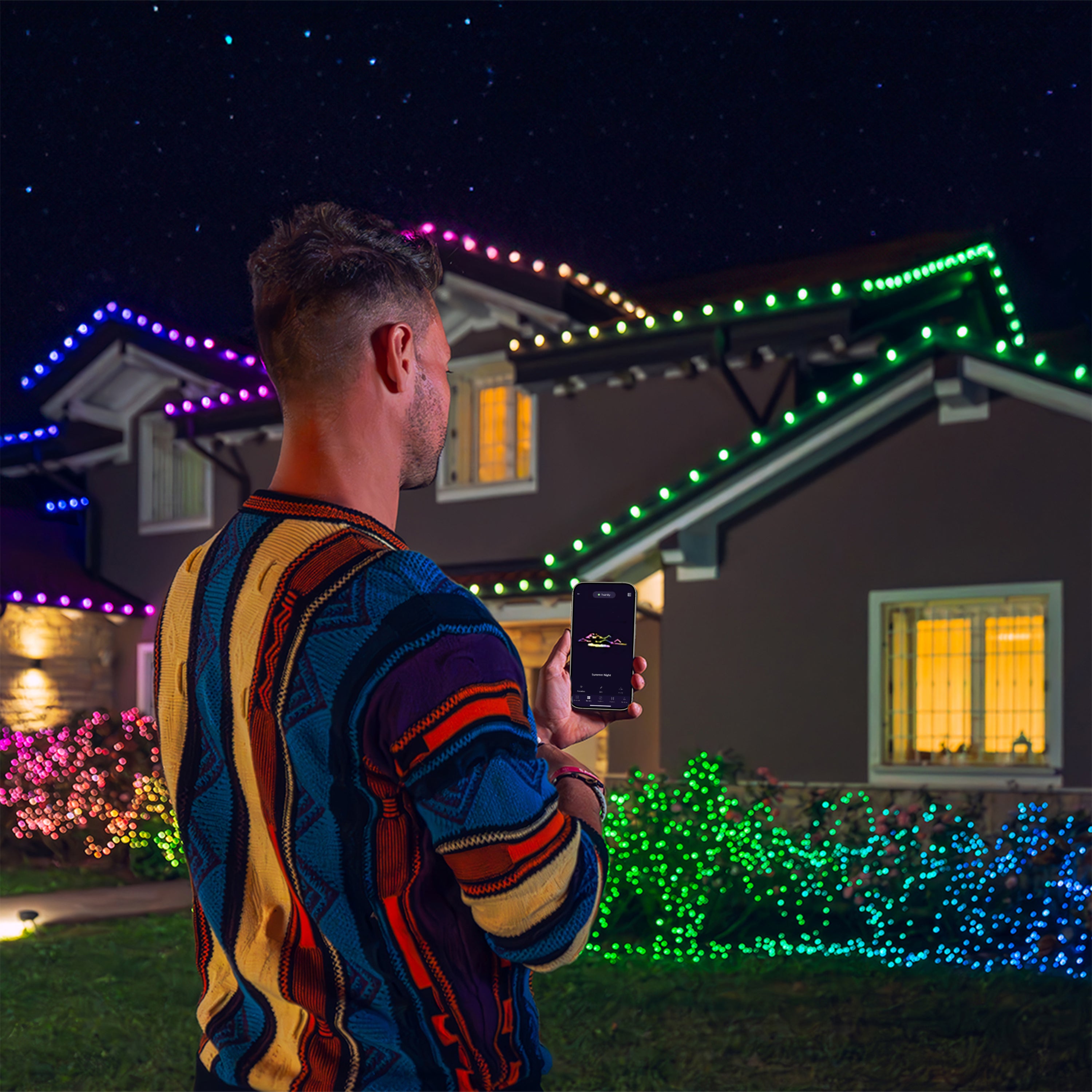 Mappe les lumières via la caméra de ton smartphone et l’app pour débloquer des gradients de couleurs, des effets et des options de regroupement, connectant virtuellement des milliers de lumières pour des affichages synchronisés étendus.