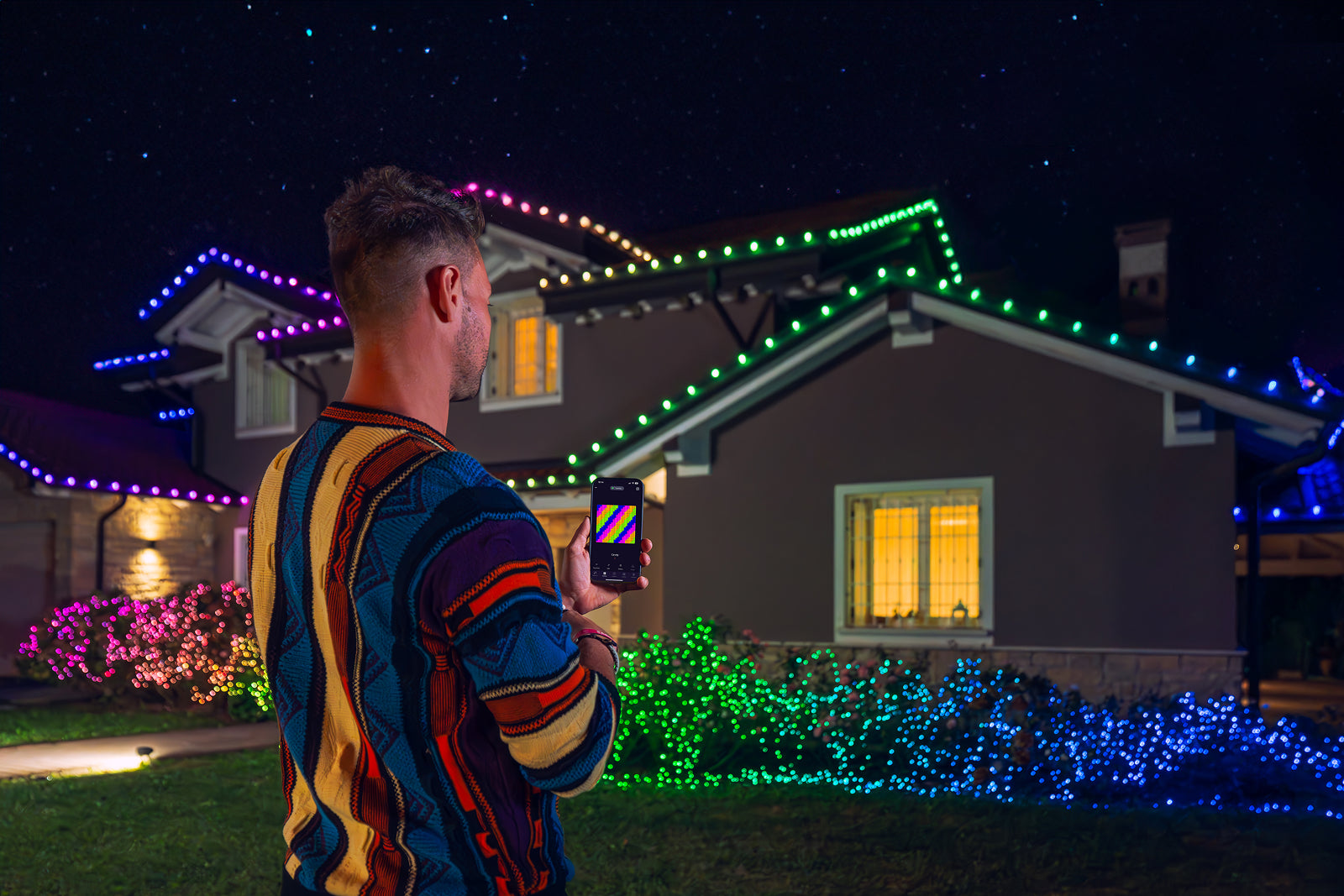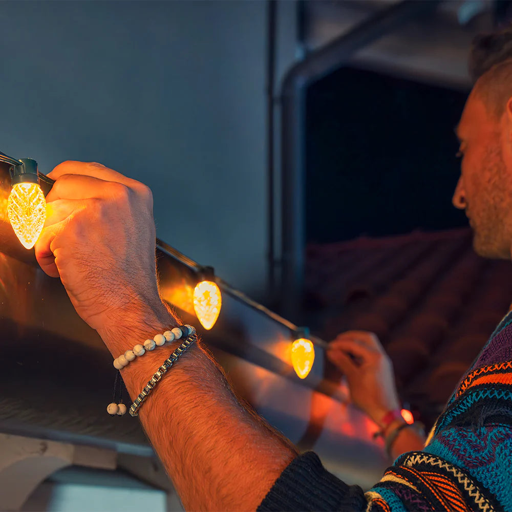 Les ampoules C9 se connectent virtuellement à d’autres lumières Twinkly intérieures et extérieures pour une installation parfaitement synchronisée.