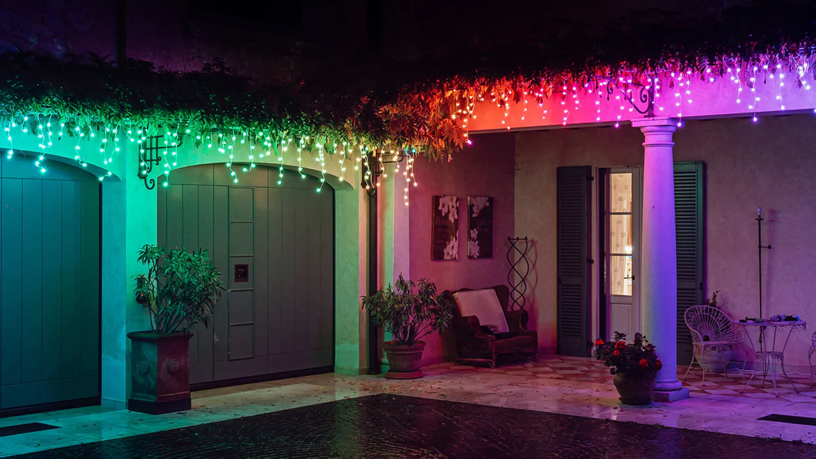 Virtually connect multiple Icicles and group with other Twinkly lights to act as one extended display or play synchronized effects for coordinated decorative lighting.