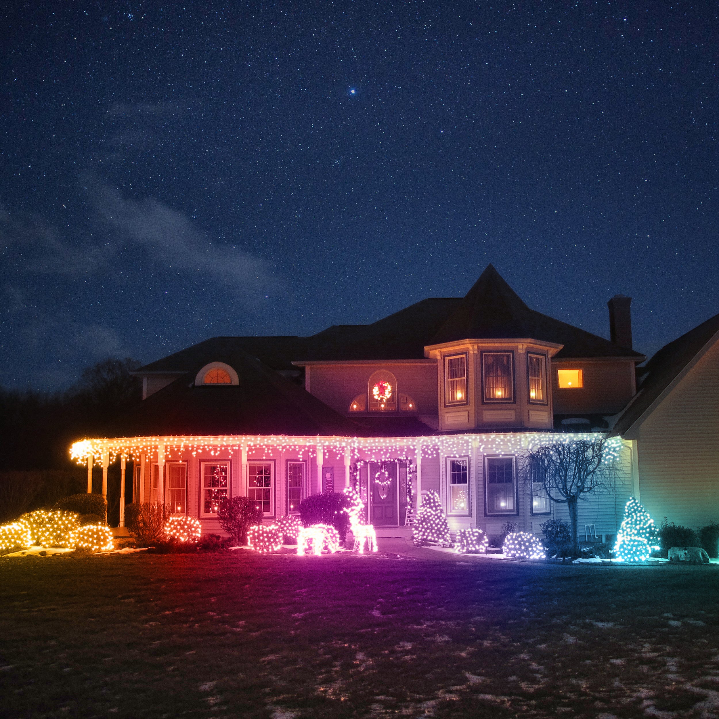 Twinkly Plus brings professional-level lighting effects to your fingertips with a 4-port controller and 1000 smart LEDs that shine with extraordinary brightness for personalized, stunning animations in 16M+ colors, including warm white. Easily map lights using your smartphone camera and the app, instantly unlocking infinite color gradients, effects and grouping options that link tens of thousands of LEDs. A powerfully resistant, weatherproof design transforms any large outdoor or indoor setting.